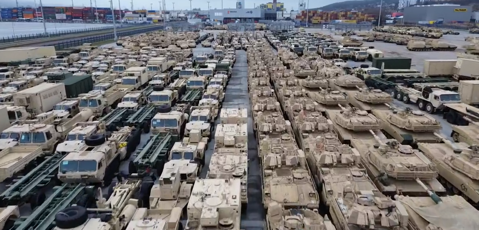 Bałtyckie media monitorujące opublikowały materiał filmowy przedstawiający ogromną ilość amerykańskiego sprzętu wojskowego przygotowywanego do przeniesienia z Portu Gdynia w Polsce.