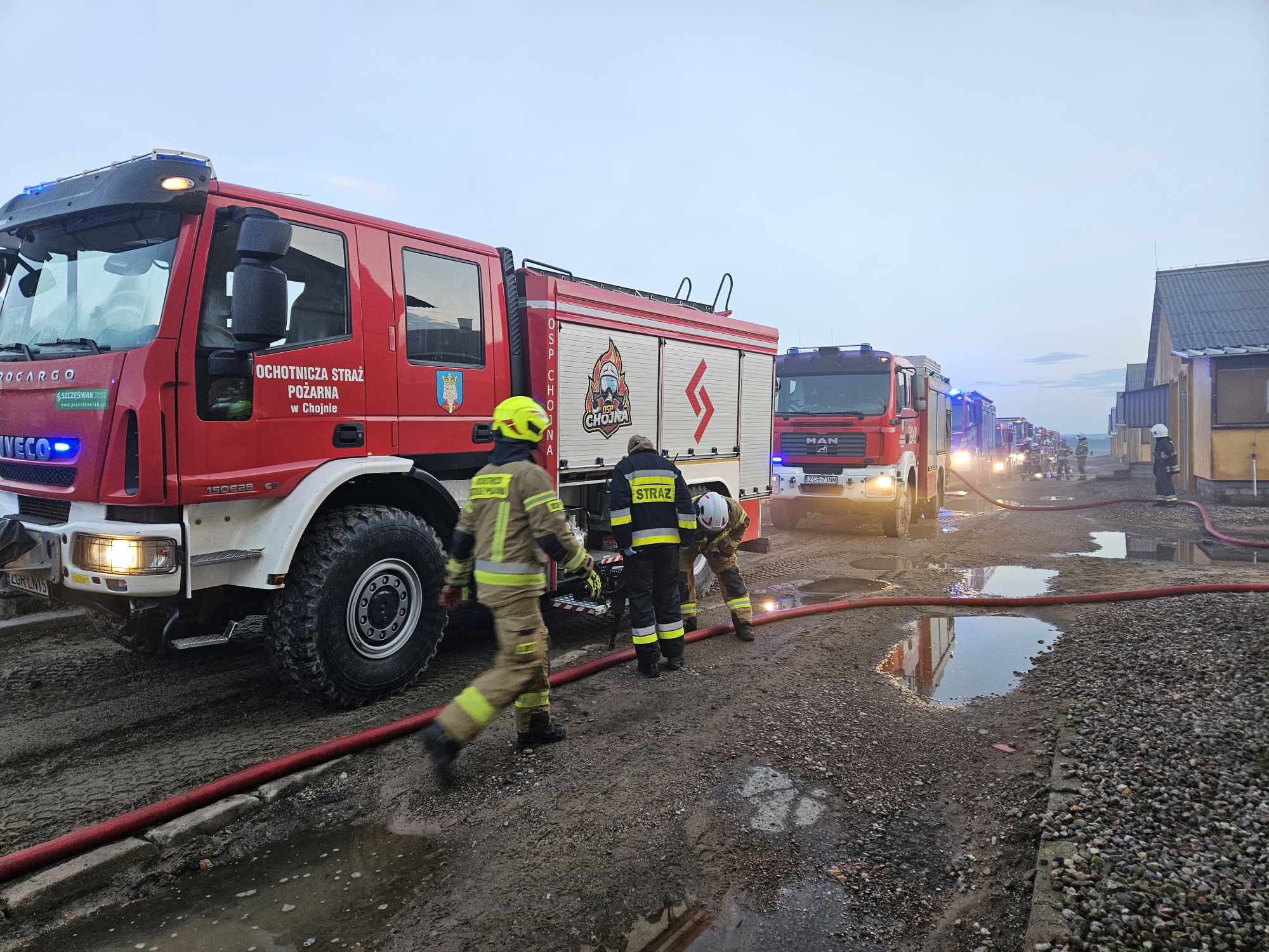 Zgłoszenie o pożarze strażacy z Gryfina otrzymali około godziny 4:00 rano. Na miejsce natychmiast skierowano 11 zastępów PSP i OSP, a w trakcie akcji dołączyły jeszcze dwa kolejne zespoły ratunkowe. Pożar objął wnętrze budynku o wymiarach 100 na 16 metrów, a ogień rozprzestrzenił się na dach. Dzięki szybkiej interwencji strażaków sytuacja została opanowana, jednak akcja dogaszania trwała jeszcze przez kilka godzin.